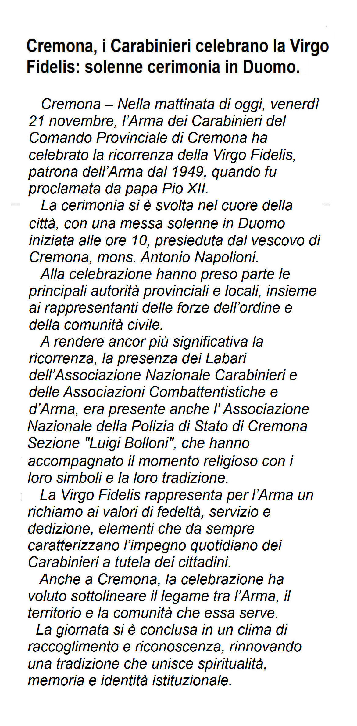 Note: Il presente sito è stato ideato e realizzato presso la sede locale A.N.P.S. sezione di Cremona, Via Massarotti, n.58, 26100 Cremona, C.F.93010720196.