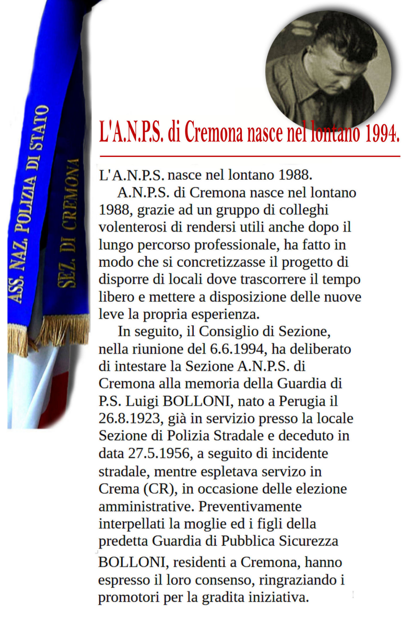 Alto, dunque, è lo scopo che l'ANPS si prefigge: di non mandare perduto il patrimonio storico-culturale creato dai Soci "anziani", ma trasmetterlo alle nuove leve e conservare intatte le tradizioni della Polizia di Stato.