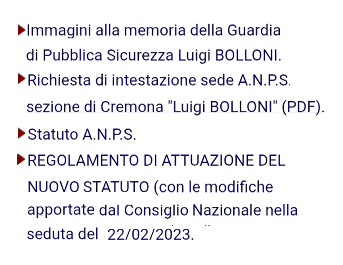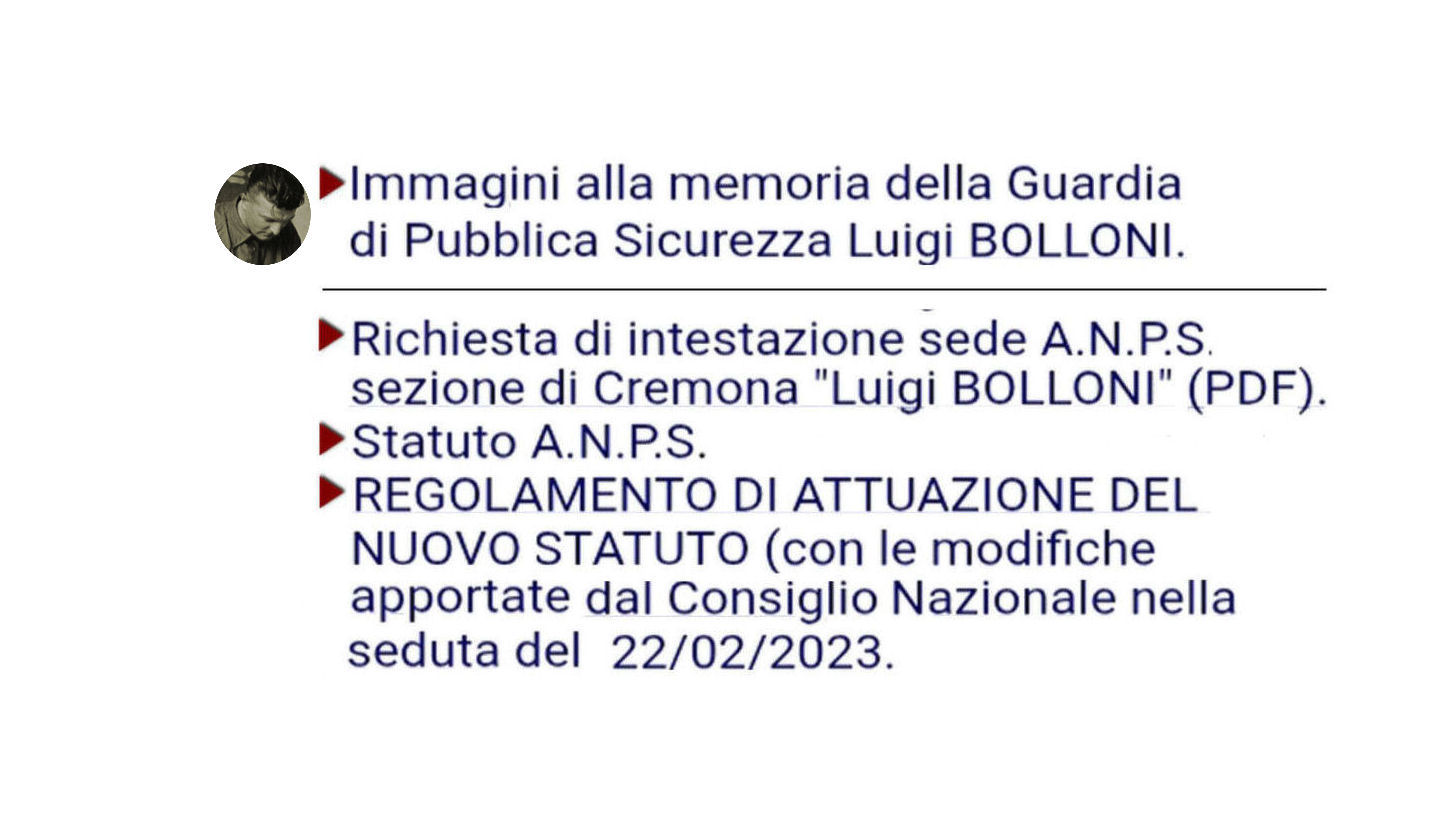 Sono, altresì, nominati Soci Onorari dal Consiglio Nazionale dell’ Associazione, su proposta dei Consigli Sezionali, i genitori, il coniuge superstite ed i figli di appartenenti ai disciolti Corpi delle Guardie di P. S. e della Polizia Femminile e alla Polizia di Stato di ogni ruolo, ordine, qualifica e grado, caduti in servizio, nonché i Cappellani Militari che hanno prestato servizio nel disciolto Corpo delle Guardie di P. S. e gli Assistenti Spirituali della Polizia di Stato.