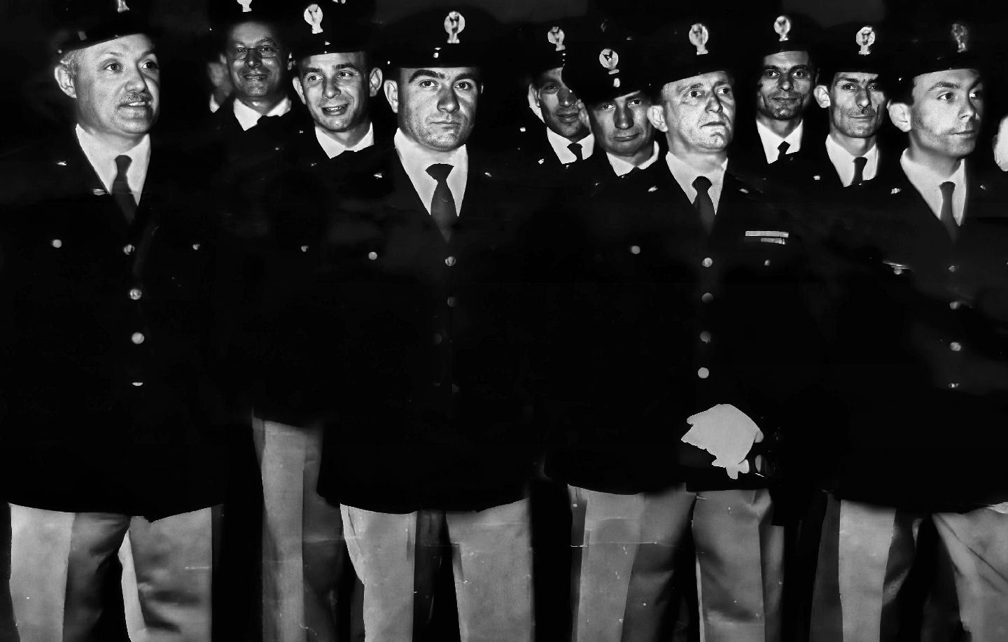 Guardie di Pubblica Sicurezza in addestramento, (Immagine tratta dall'ufficio storico della Polizia di Stato e pubblicata su "All'inseguimento dei malfattori", storia della motorizzazione della Polizia di Stato raccontata da Paolo MASOTTI). |