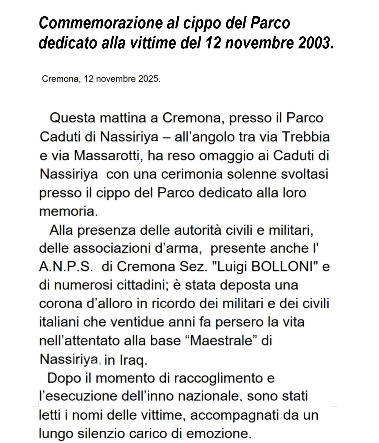 Note: Il presente sito è stato ideato e realizzato presso la sede locale A.N.P.S. sezione di Cremona, Via Massarotti, n.58, 26100 Cremona, C.F.93010720196.