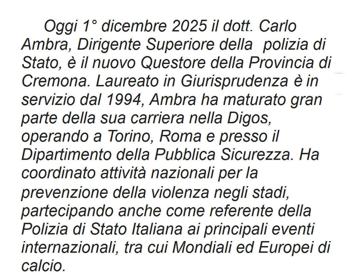 Il gruppo ideatori sito A.N.P.S. Cremona (g.i.s.A.C.), unitamente ai consiglieri A.N.P.S. Cremona Sezione "Luigi BOLLONI", ringraziano gli amministratori dei Siti istituzionali www.quirinale.it, www.poliziadistato.it, al Consiglio Nazionale ed all’Ufficio di Presidenza dell’ANPS, all’Archivio storico dell’ANPS e del periodico Fiamme d’Oro, all’Archivio della rivista Polizia Moderna ed all’Ufficio Storico della Polizia di Stato per la fonte di riferimento, nonché a tutti quei Siti e ai soci che hanno dato la loro disponibilità e di essere stati concretamente vicini all’iniziativa. In ogni caso si precisa che se qualcuno sostiene di vantare la proprietà, può comunicarlo all'indirizzo sottoelencato, il materiale interessato verrà immediatamente oscurato da questo sito, oppure se gradito, indicheremo la fonte (ind. web) del Sito in cui sono stati acquisiti i contenuti. Tel. 037231137 / fax 037231137 / E-Mail: anpscremona@anpscremona.it